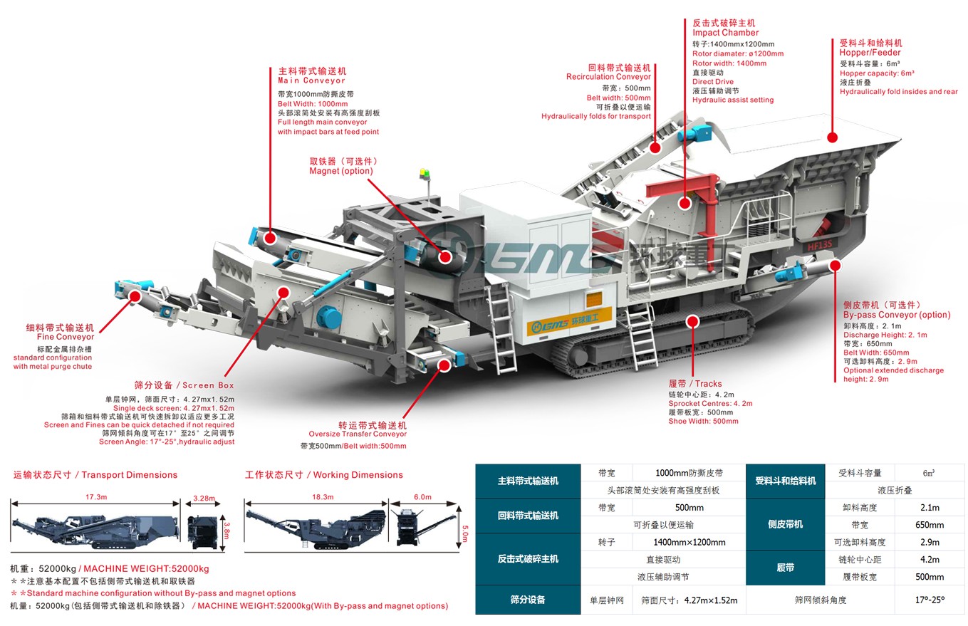 篩分設(shè)備和細(xì)料帶式輸送機(jī)拆卸簡(jiǎn)易快捷,機(jī)器可以很方便地改為開環(huán)破碎。