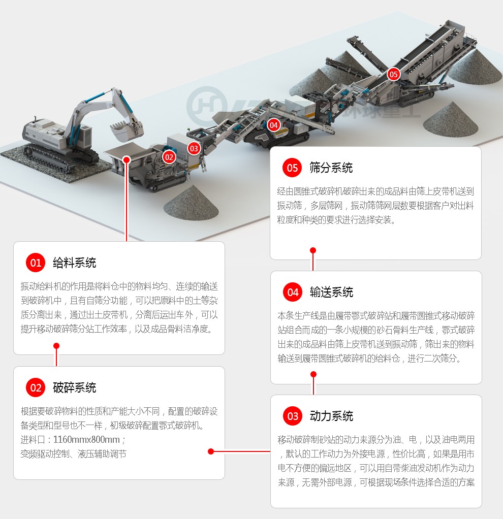 設(shè)備保留了履帶式設(shè)備移動(dòng)轉(zhuǎn)場的便捷性、現(xiàn)場快速生產(chǎn)的優(yōu)越性。