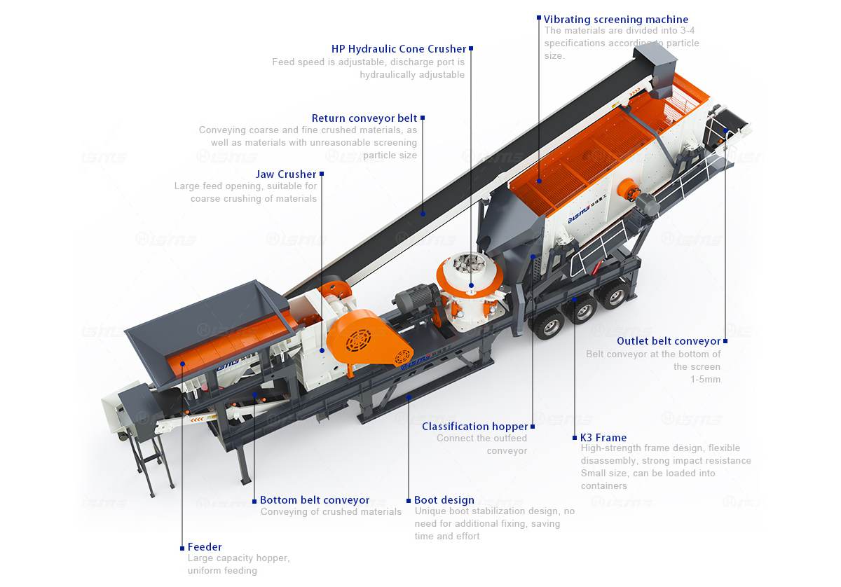 該設(shè)備主要應(yīng)用于高硬度礦石、石頭、巖石的粗中細(xì)碎加工,在建筑工程廢料等領(lǐng)域的效果也比較好。 可單機(jī)作業(yè),也可搭配其他系列的移動破碎站,主要破碎設(shè)備是鄂破和圓錐破,搭配給料機(jī)和振動篩,根據(jù)客戶需求配置一臺或多臺破碎機(jī),組合成客戶需要的移動碎石一體機(jī)